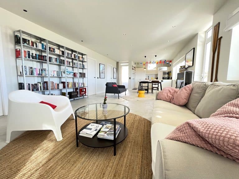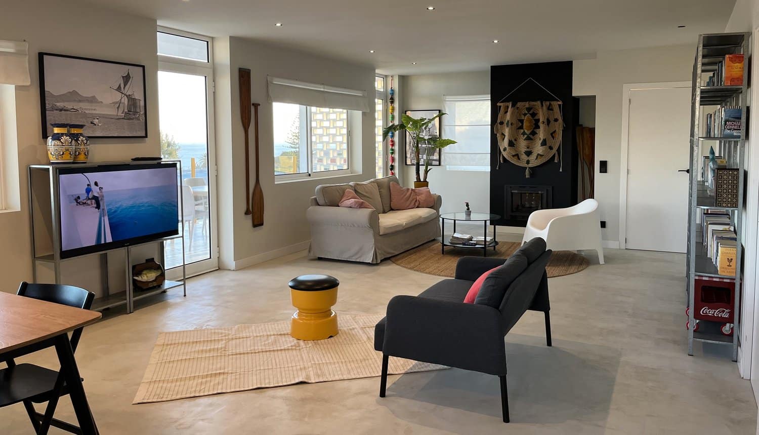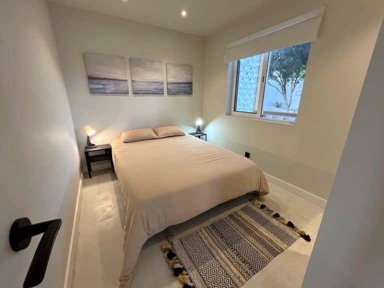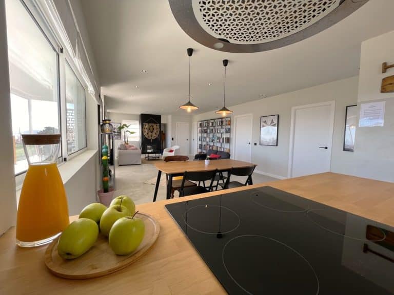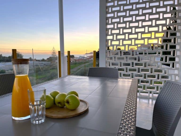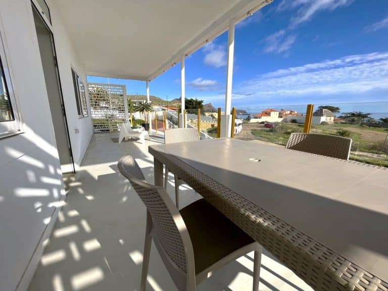 A sunny and spacious T2 apartment containing open space kitchen with living room, 2 bedrooms, toilet with shower, laundry room, storage room, terrace next to entrance door and over 30 m² square terrace overlooking the ocean. It accommodates up to 3 people.